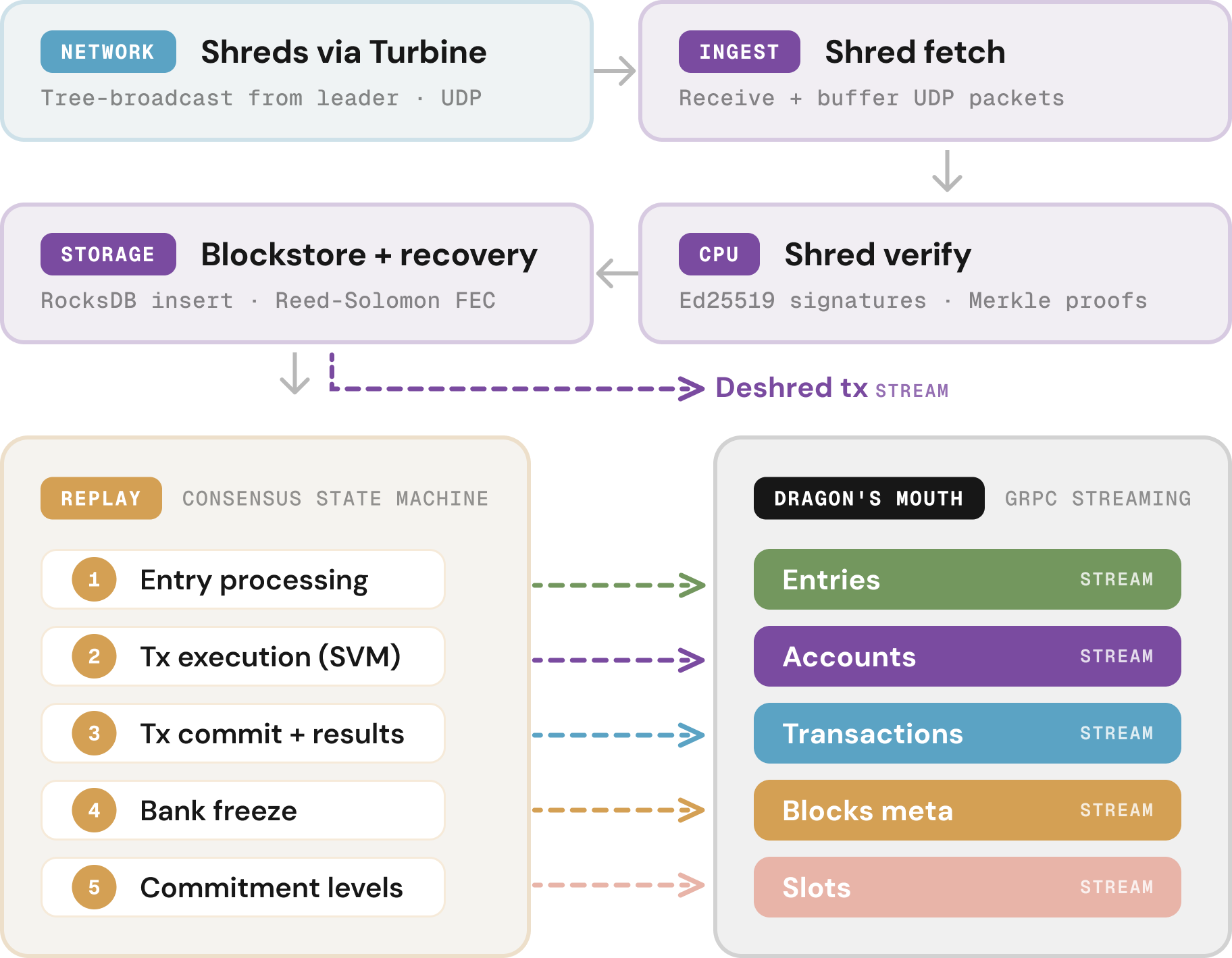 - When you stream Solana data, most of your latency comes from the replay stage, where every RPC node re-executes transactions to rebuild account state