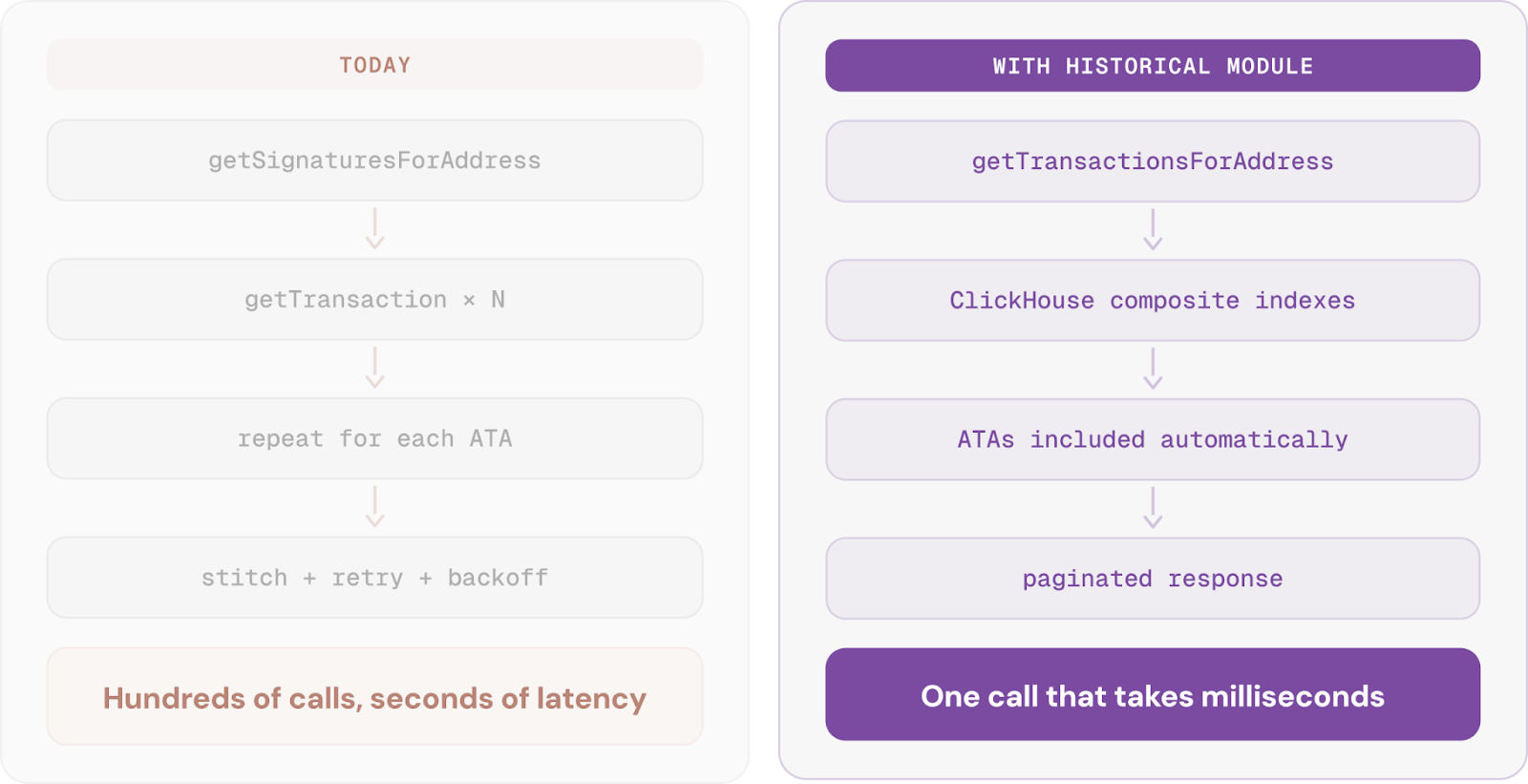 Before diving into the architecture, let's look at one of the most notorious historical problems on Solana: getting a wallet's transaction history.